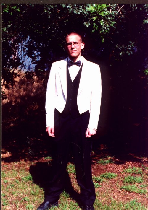 (1)Me and Julie at the prom (2) The official Prom Picture (3) Me before the prom (4) Before the band left for cornerstone (5) Me at our first show (6) Me, Trever, and Aaron at our first show (7) This is the Joliet prison..name sound familiar? How about Joliet Jake from the Blues Brothers? Yup, this is the prison that he was in in the movie (8) This is me, infront of some museum in chicago. There was, for some reason or another, about 700 differently painted cows scattered around downtown, it was pretty funny